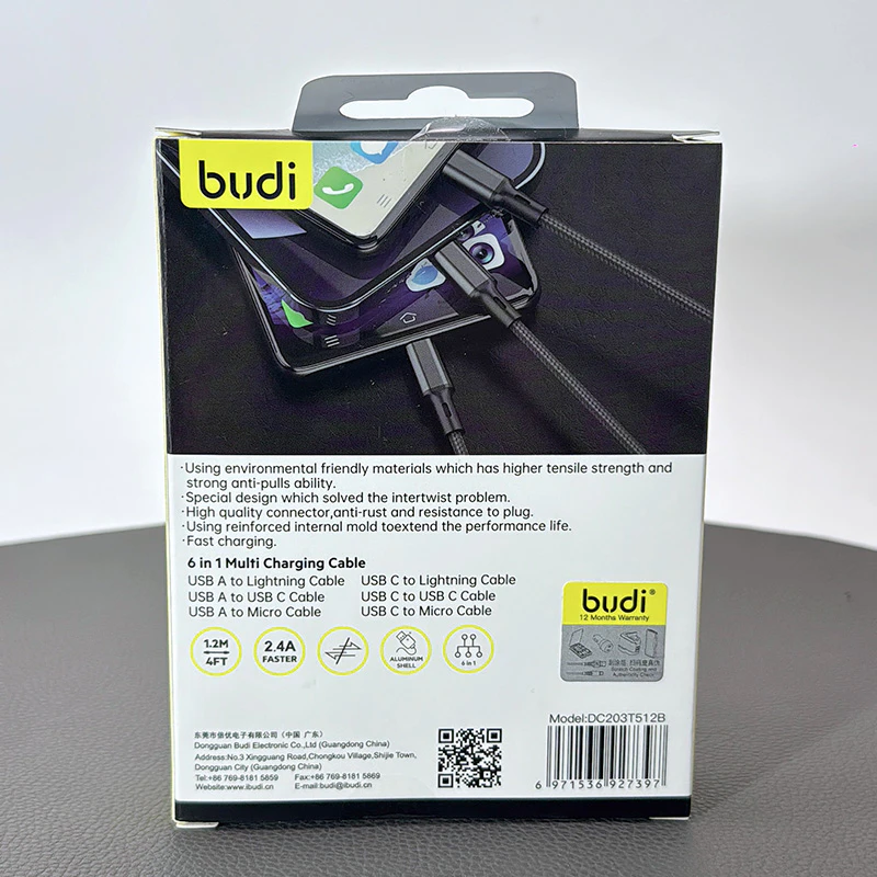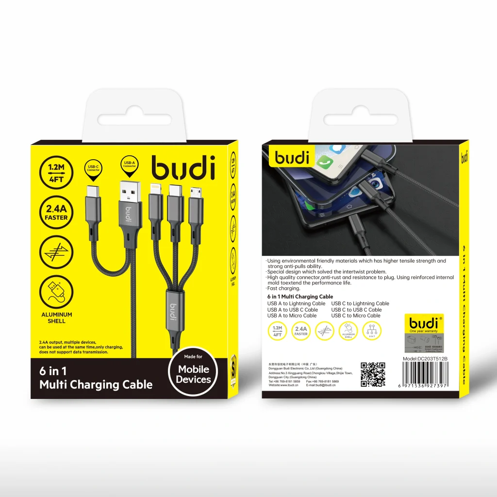 Budi DC203T512B 1.2m 6 in 1 cable