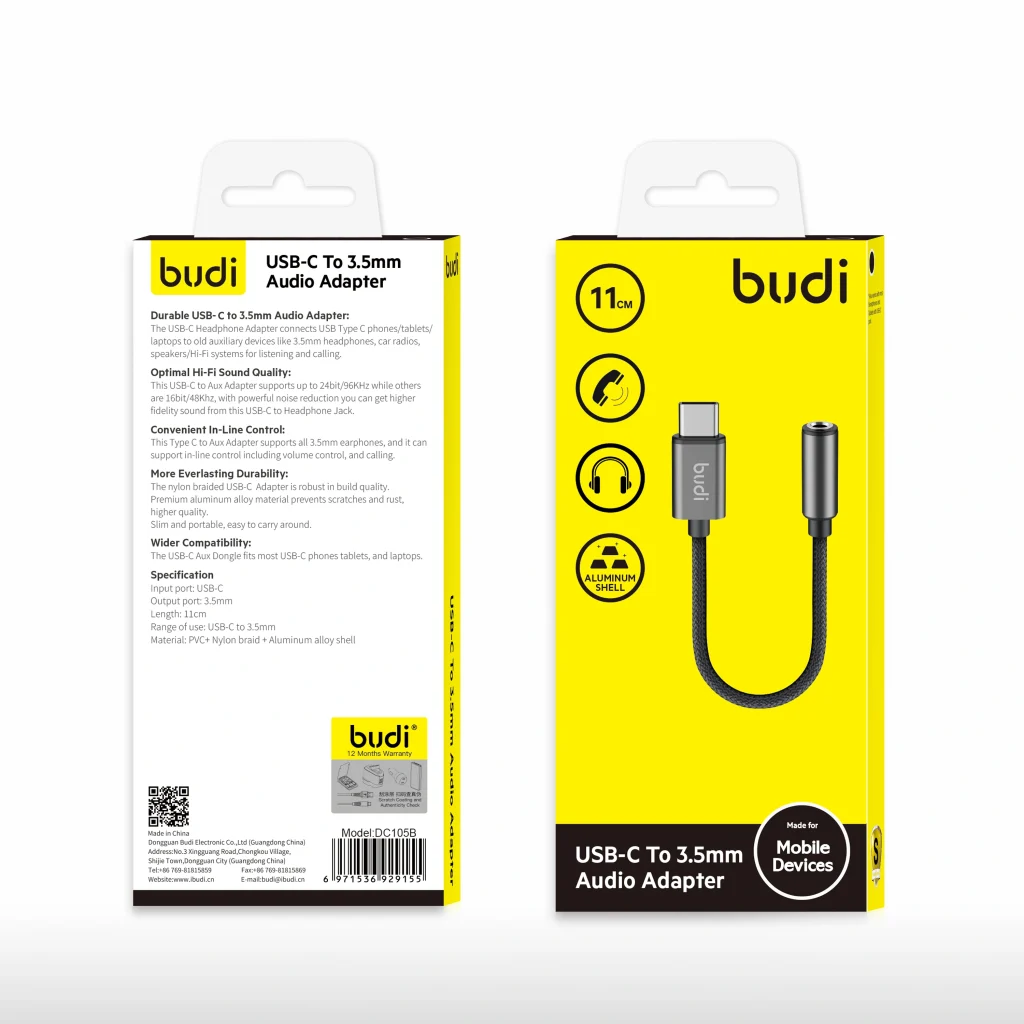 budi USB-C to 3.5mm Audio Adapter (DC105B)