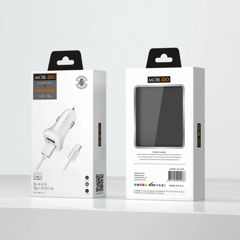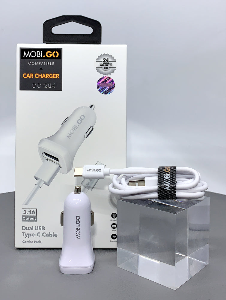 Mobigo GO204 3.1A 2USB Car Charger with USB-A to C Combo