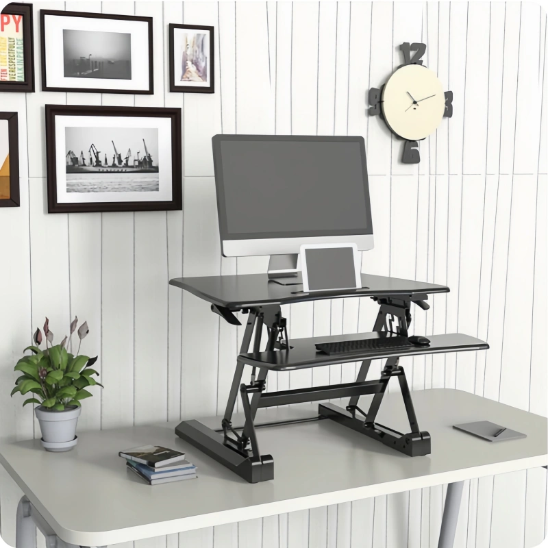 Switch from sitting to standing in seconds with this Riser Ergonomic Desk. Its smooth gas spring adjustment lets you find your perfect height, helping you stay comfortable and focused all day.